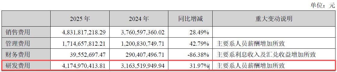 除了业绩增长外,年报显示,阳光电源2025年实现毛利率31.83%,同比增加1.89个百分点,主要系公司品牌溢价、产品创新、规模效应等影响所致。同时,公司期内经营活动产生的现金流量净额达到169.18亿元,同比增长40.18%,增幅超过归母净利润。